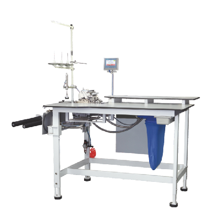 The preseams:hem,fly curve and seat curve canbe serged manually at the sewing head.The sideseams and inseams are sewn fully automatically.Height adjustable contour guide with quick adjustment.The work piece is controlled by the contour guide,sewn and stacked.Automatic chain cutting and waste cutting without affecting sewing material.Siemens control system and screen.
